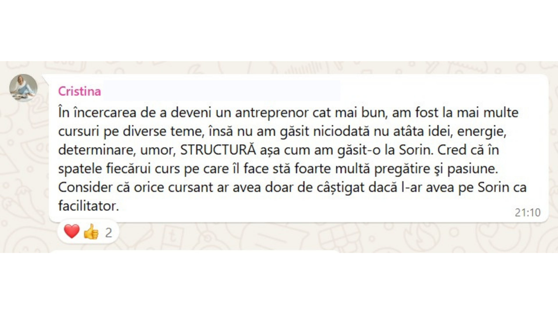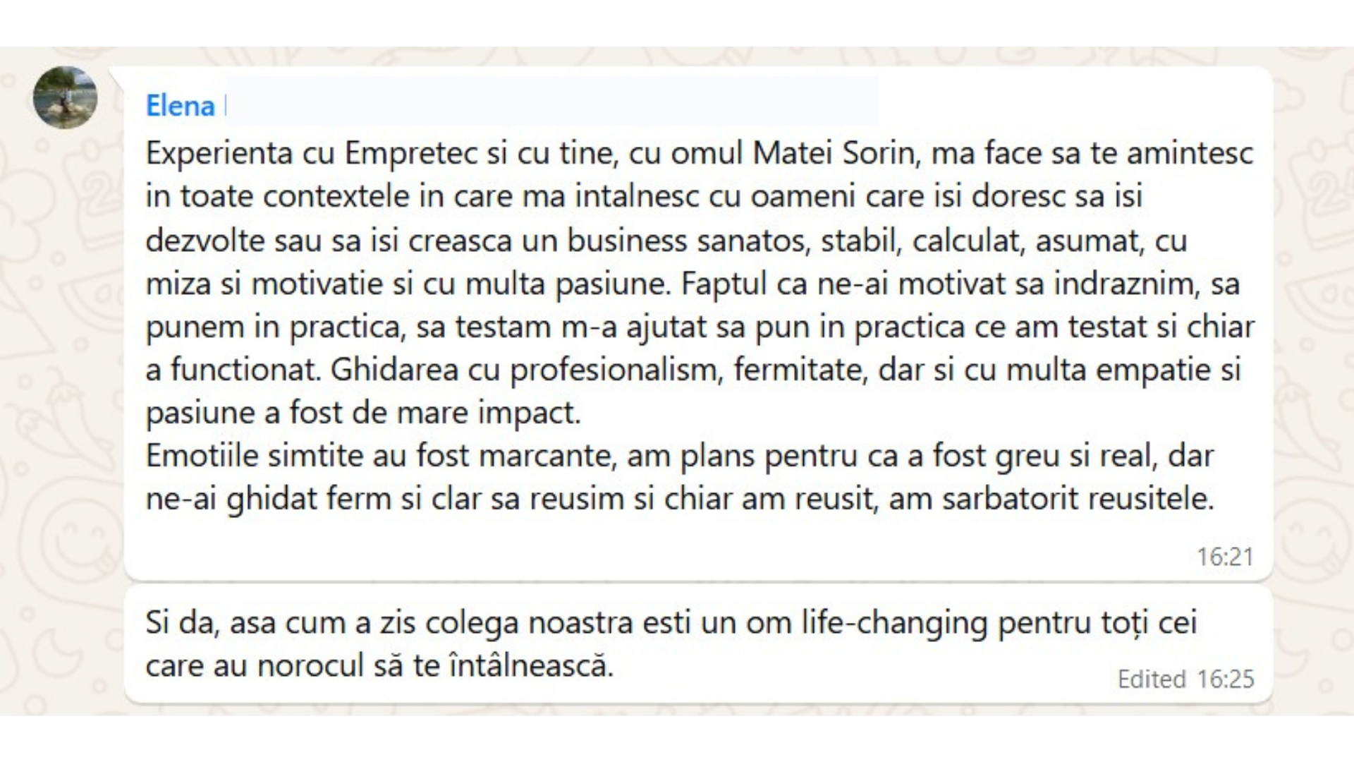 ...înțelegi că, pentru a crește afacerea, trebuie mai întâi să crești TU. Nu cauți doar o nouă strategie, ci o transformare personală. Ai înțeles că limitele business-ului tău sunt, de fapt, propriile tale limite și ești gata să le depășești.