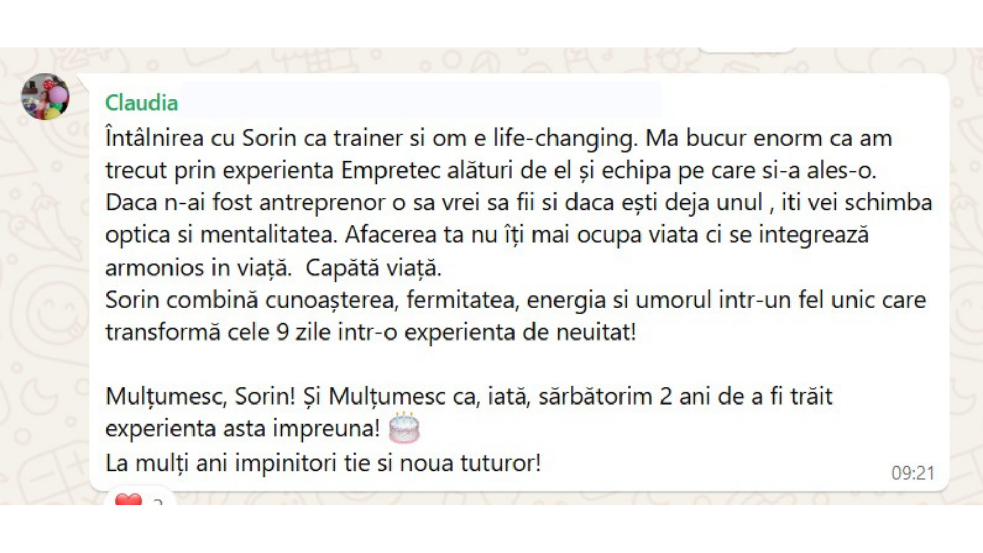 Aproape toți cei care trec prin această experiență simt un impact direct în capacitatea lor de a-și duce business-ul la următorul nivel.